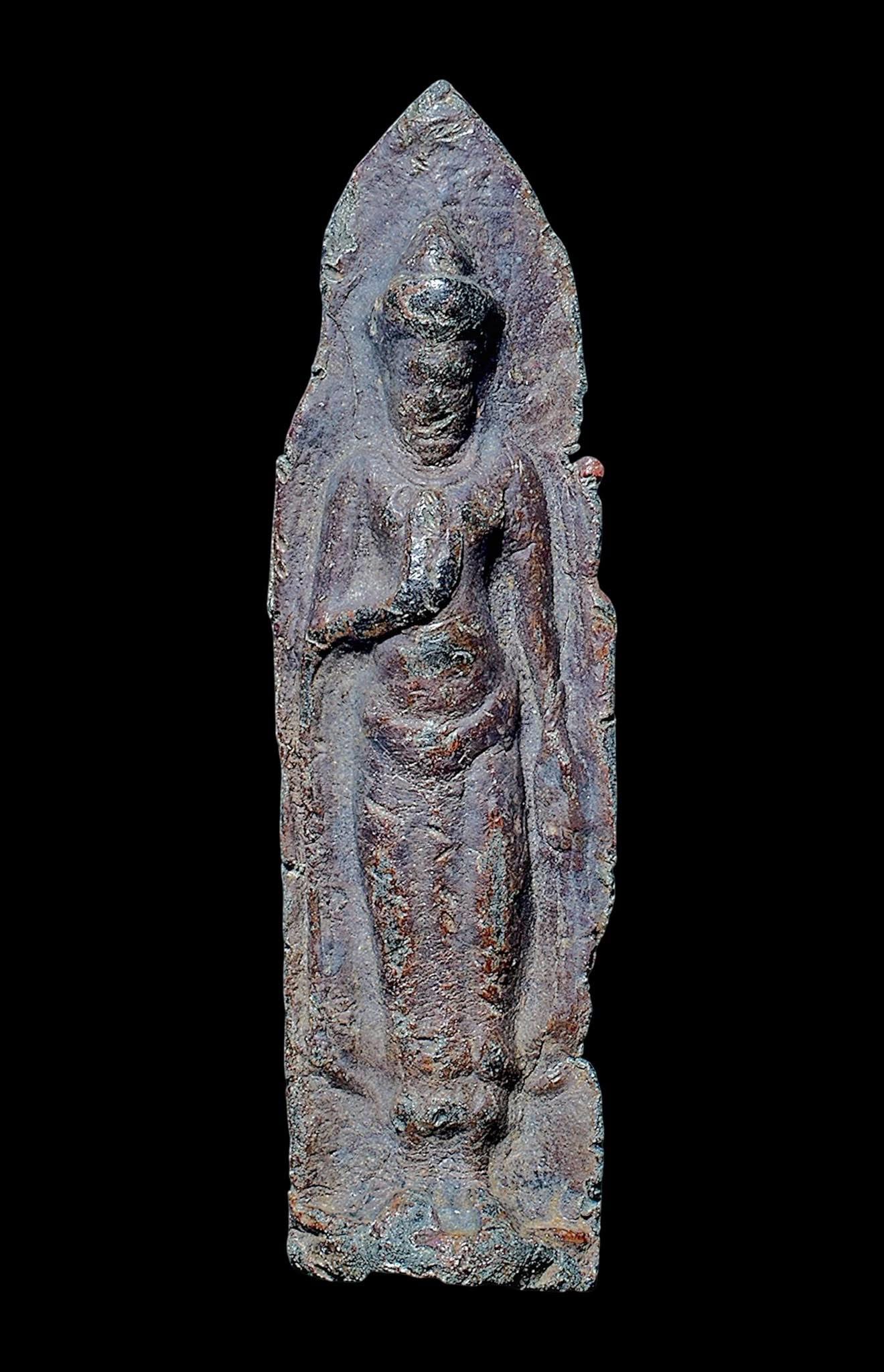 พระร่วงยืนหลังลายผ้า สนิมแดงจากกรุพระปรางค์ใหญ่ ลพบุรี