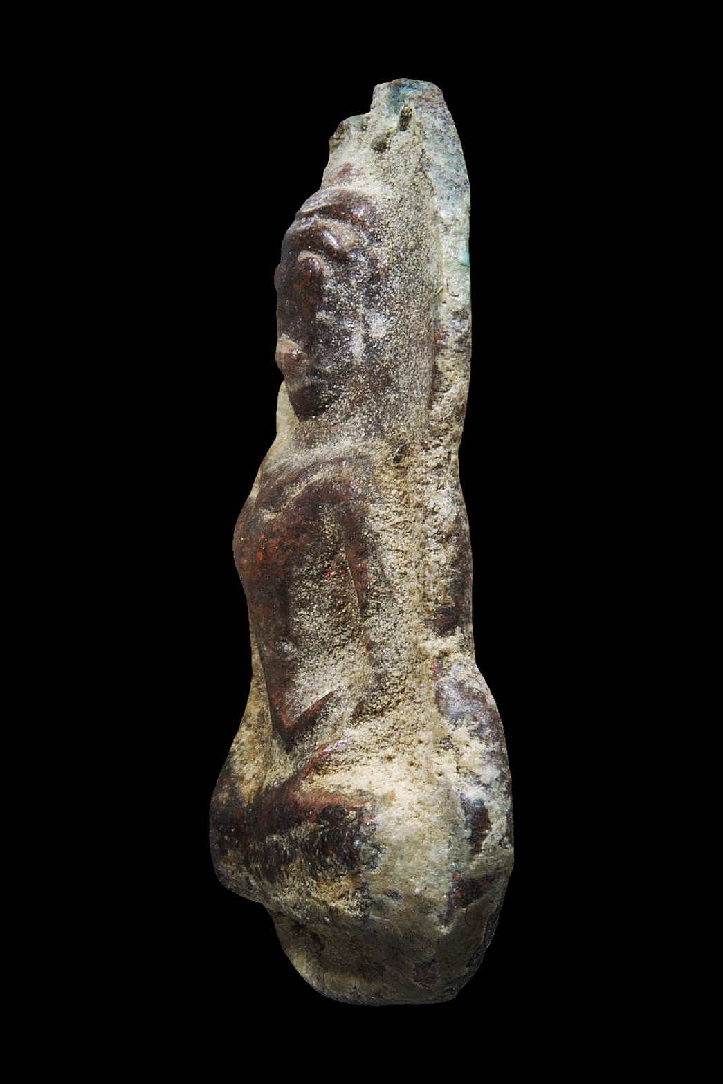 พระท่ากระดานน้อยเนื้อตะกั่วสนิมแดง กรุท่าเสา กาญจนบุรี