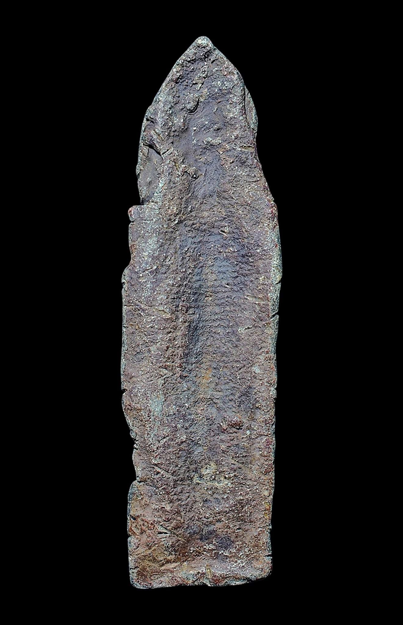 พระร่วงยืนหลังลายผ้า สนิมแดงจากกรุพระปรางค์ใหญ่ ลพบุรี