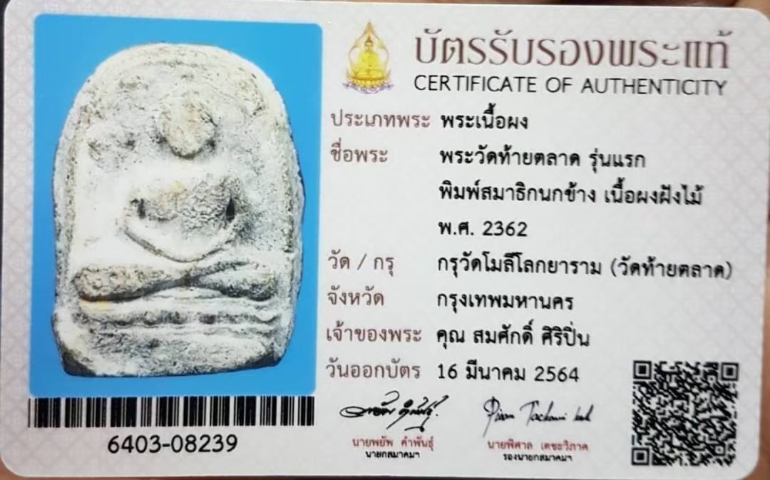 พระกรุวัดท้ายตลาด ปี2362 รุ่นแรก พิมพ์สมาธิข้างกนก เนื้้อผงใบลานฝังไม้ สวยเดิมๆ แท้ดูง่าย พร้อมใบเซอร์สมาคม