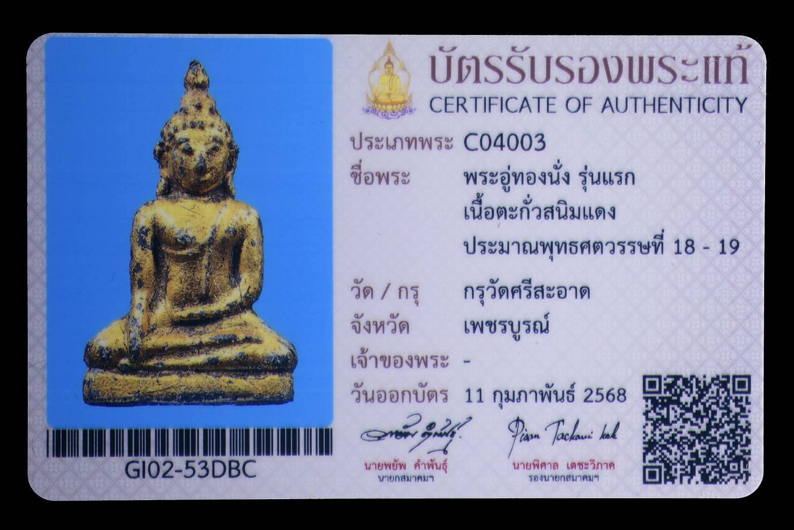 พระอู่ทองนั่ง กรุวัดศรีสะอาด จ.เพชรบูรณ์ รุ่นแรก เนื้อชินสนิมแดงลงรักปิดทองเดิมจากกรุ สวยเดิมๆ แท้ดูง่าย พร้อมใบเซอร์สมาคม