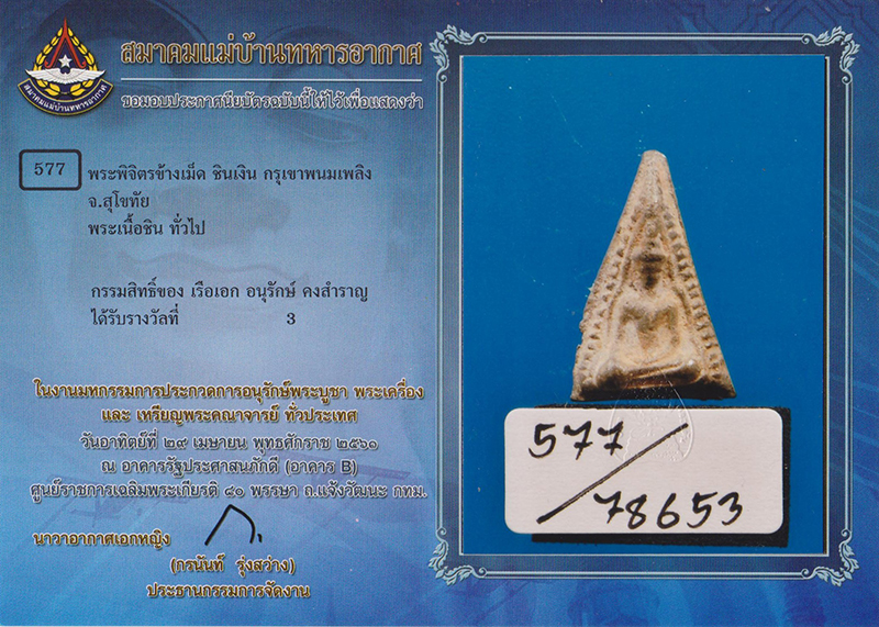 รหัส 0011เนื้อชินเงินรางวัลที่ 3 จัดโดยสมาคมแม่บ้านทหารอากาศ วันที่ 29 เม.ย.61