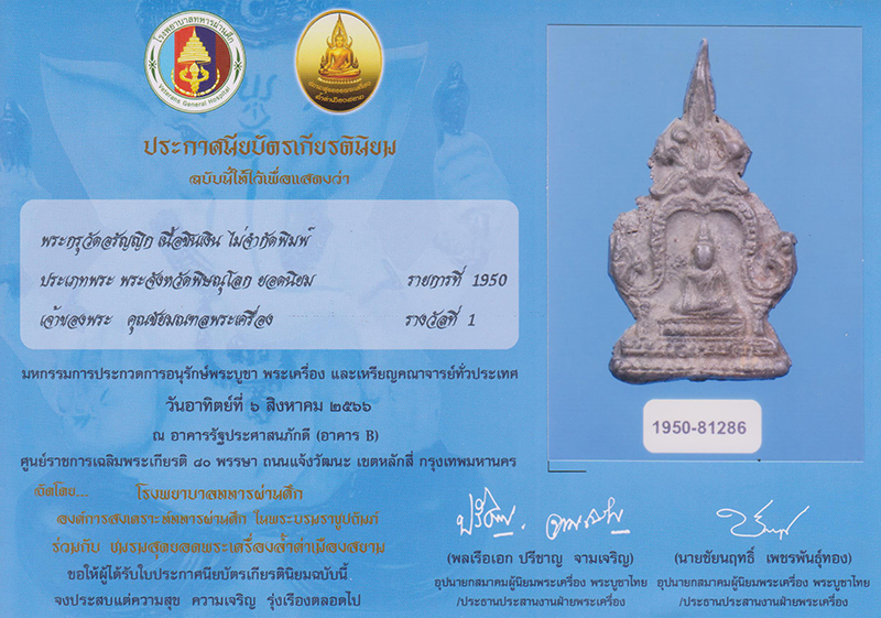 รหัส 0207เนื้อชินเงินรางวัลที่ 1 จัดโดยโรงพยาบาลทหารผ่านศึก วันที่ 6 ส.ค.66