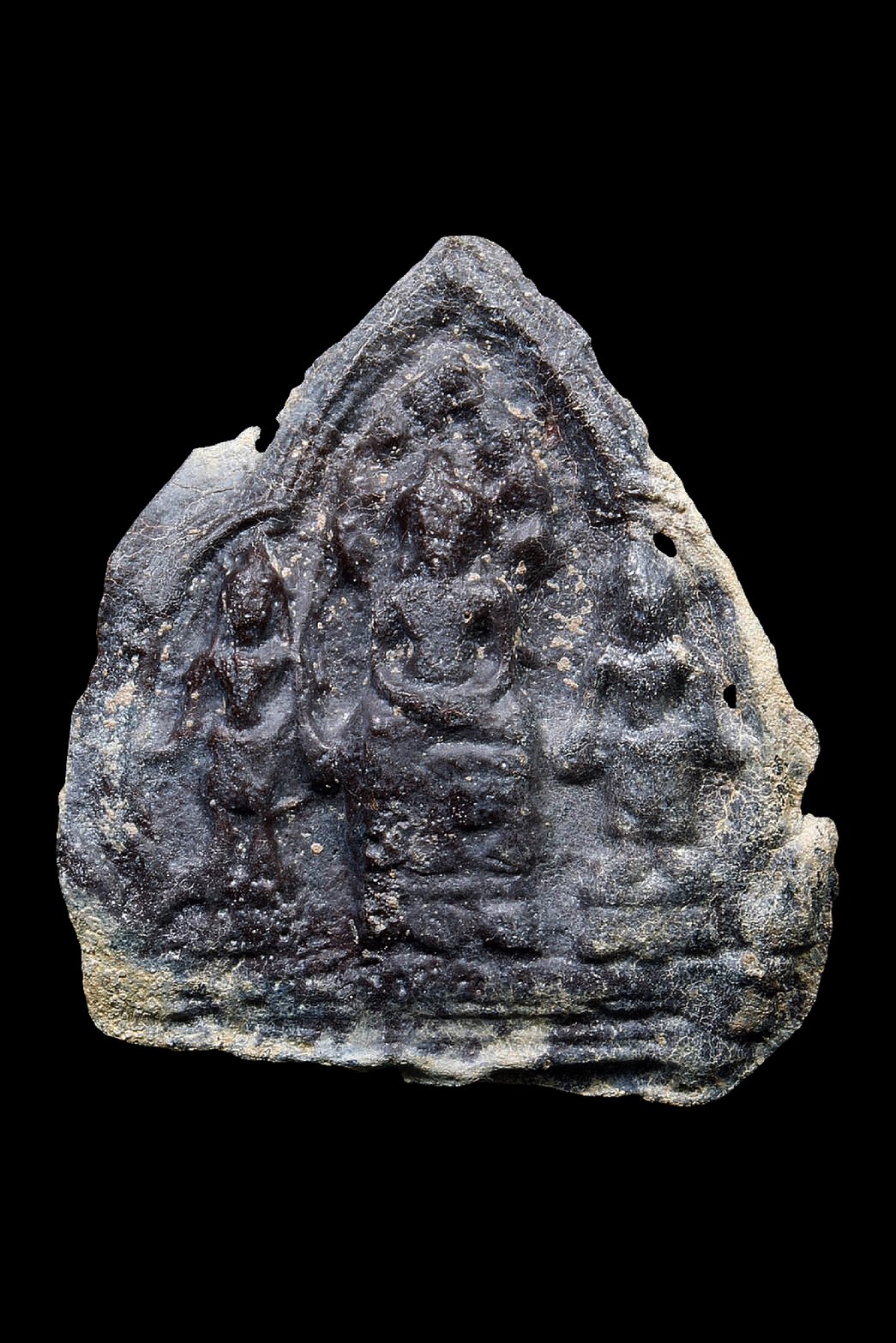 พระตรีกายเนื้อตะกั่วสนิมแดง กรุศรีมโหสถ ปราจีนบุรี