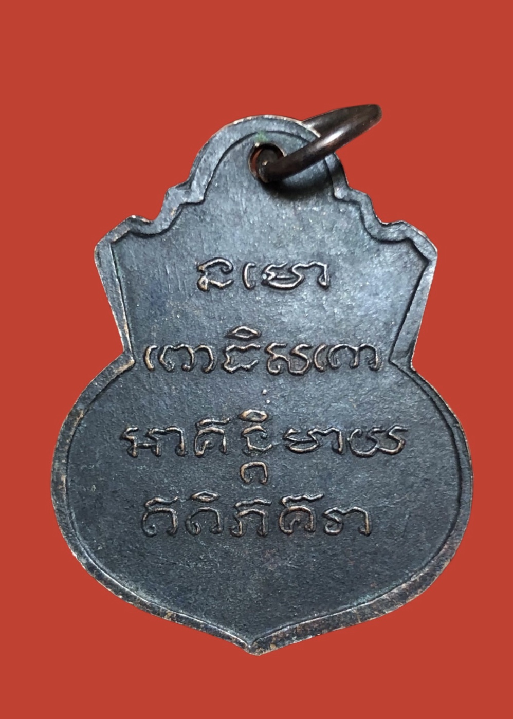 พระห้าเหลี่ยมเนื้อดินหลวงพ่อลี วัดอโศาราม หลังจาร
