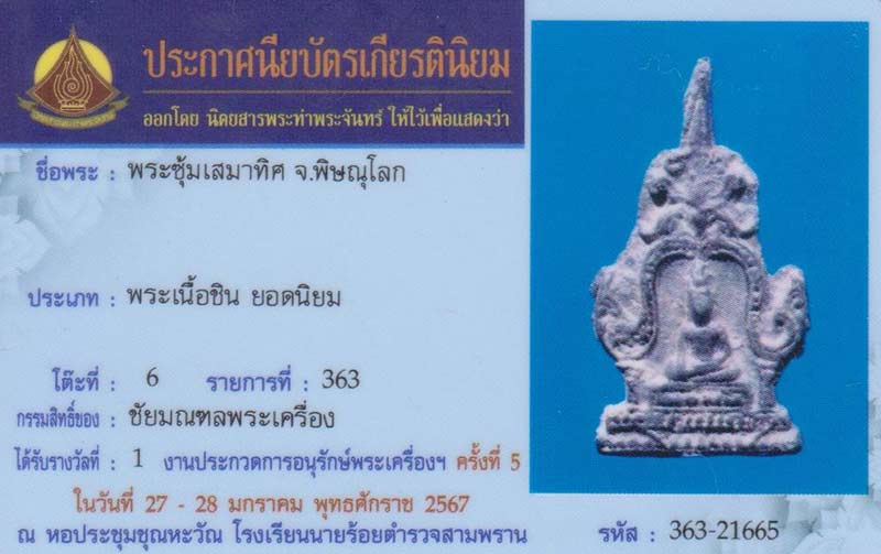 รหัส 0206เนื้อชินเงินรางวัลที่ 1 จัดโดยนิตยสารพระท่าพระจันทร์ วันที่ 27-28 ม.ค.67