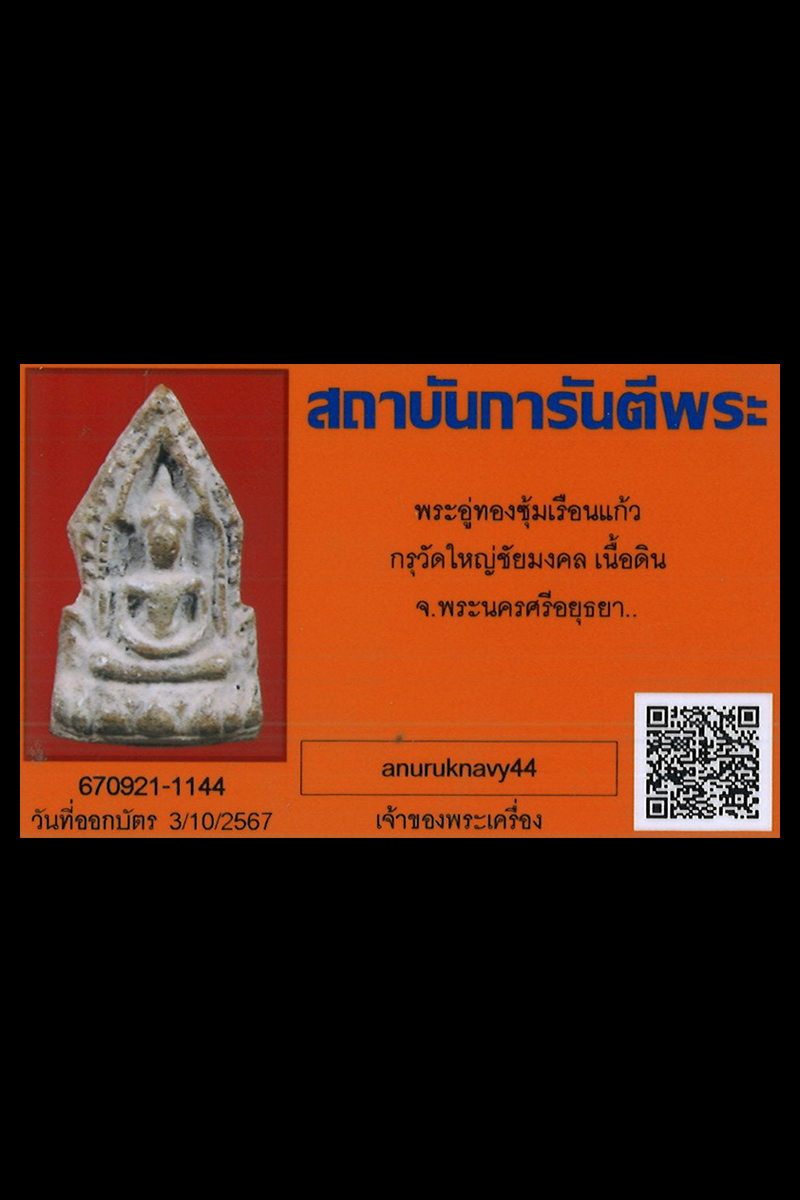 พระอู่ทองซุ้มเรือนแก้ว วัดใหญ่ชัยมงคล พระนครศรีอยุธยา