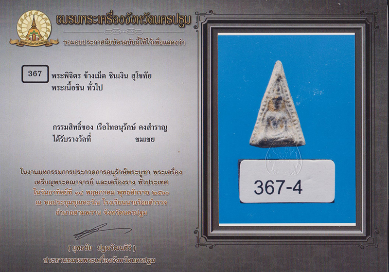 รหัส 0201เนื้อชินเงินรางวัลที่ 1 จัดโดยชมรมพระเครื่องจังหวัดนครปฐม วันที่ 14 พ.ค.60