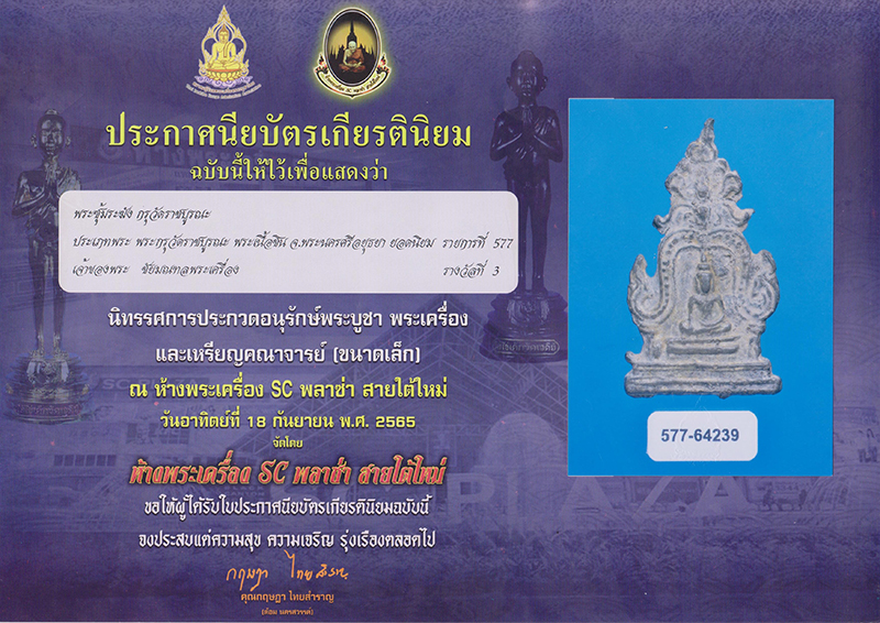 รหัส 0015เนื้อชินเงินรางวัลที่ 3 จัดโดยห้างพระเครื่อง SC พลาซ่า สายใต้ใหม่ วันที่ 18 ก.ย.65