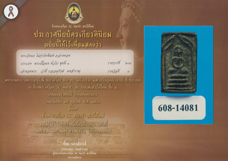 รางวัลที่ 1 จัดโดยห้างพระเครื่อง SC พลาซ่า สายใต้ใหม่ วันที่ 15 ต.ค.60