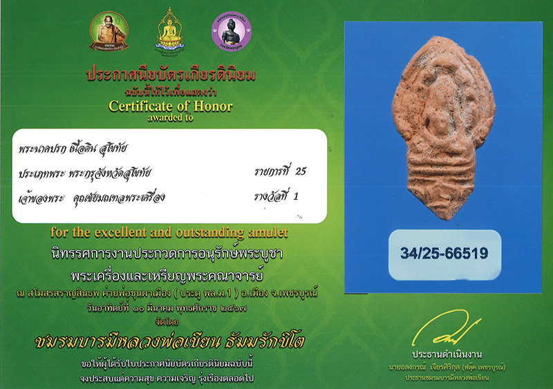 รหัส 0106เนื้อดินรางวัลที่ 1 จัดโดยชมรมบารมีหลวงพ่อเขียน ธัมมรักขิโต วันที่ 10 มี.ค.67